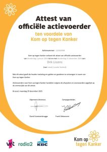 Wil je Lieve(r) zonder kanker steunen dan kan dit door te storten op BE03 4886 6666 6684 met vermelding van 1100420938 of via de rechtstreekse link naar de actiepagina